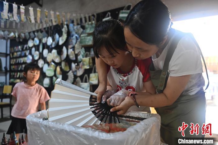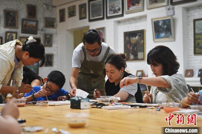 8月20日,甘肅敦煌莫高里工匠村內(nèi),學員體驗敦煌文化研學課程。工匠村開設了泥板畫、彩繪、雕塑制作、剪紙、農(nóng)耕體驗等課程,現(xiàn)已發(fā)展成為一個集敦煌文化講堂、壁畫書法研習、美術設計、彩塑制作教學、篆刻藝術、傳統(tǒng)釀酒體驗、農(nóng)業(yè)產(chǎn)業(yè)發(fā)展等于一體的多功能實訓基地。中新社記者 李亞龍 攝