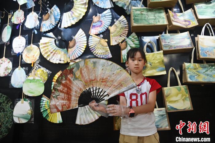 8月20日,甘肅敦煌莫高里工匠村內(nèi),學員展示研學成果。工匠村開設了泥板畫、彩繪、雕塑制作、剪紙、農(nóng)耕體驗等課程,現(xiàn)已發(fā)展成為一個集敦煌文化講堂、壁畫書法研習、美術設計、彩塑制作教學、篆刻藝術、傳統(tǒng)釀酒體驗、農(nóng)業(yè)產(chǎn)業(yè)發(fā)展等于一體的多功能實訓基地。中新社記者 李亞龍 攝