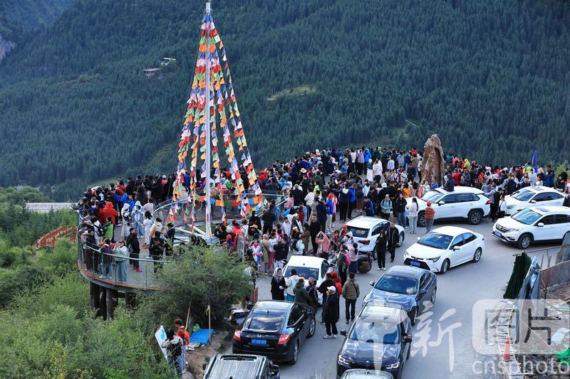 8月19日,游客在扎尕那景區(qū)仙女灘游玩。扎尕那景區(qū)位于甘肅省甘南藏族自治州迭部縣益哇鎮(zhèn),藏語意為“石匣子”,整個景區(qū)平均海拔在3000米以上,四周群山環(huán)抱,山頂云霧繚繞,森林、草原、青稞梯田與獨特的人文景觀互補(bǔ)整合,藏式民居點綴其間,吸引游客前來參觀游玩。中新社發(fā) 陳永剛 攝