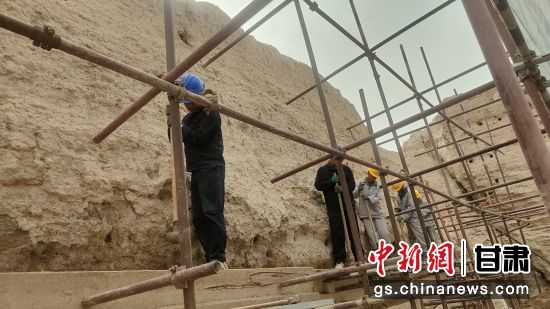 “主要保護(hù)措施有夯筑支頂加固、裂隙注漿、風(fēng)蝕凹槽加固等,現(xiàn)已完成總工程的90%,計(jì)劃11月中旬全面完工。”敦煌研究院文物保護(hù)技術(shù)服務(wù)中心鎖陽城遺址內(nèi)城東墻保護(hù)修繕工程修復(fù)技師張鑫說。