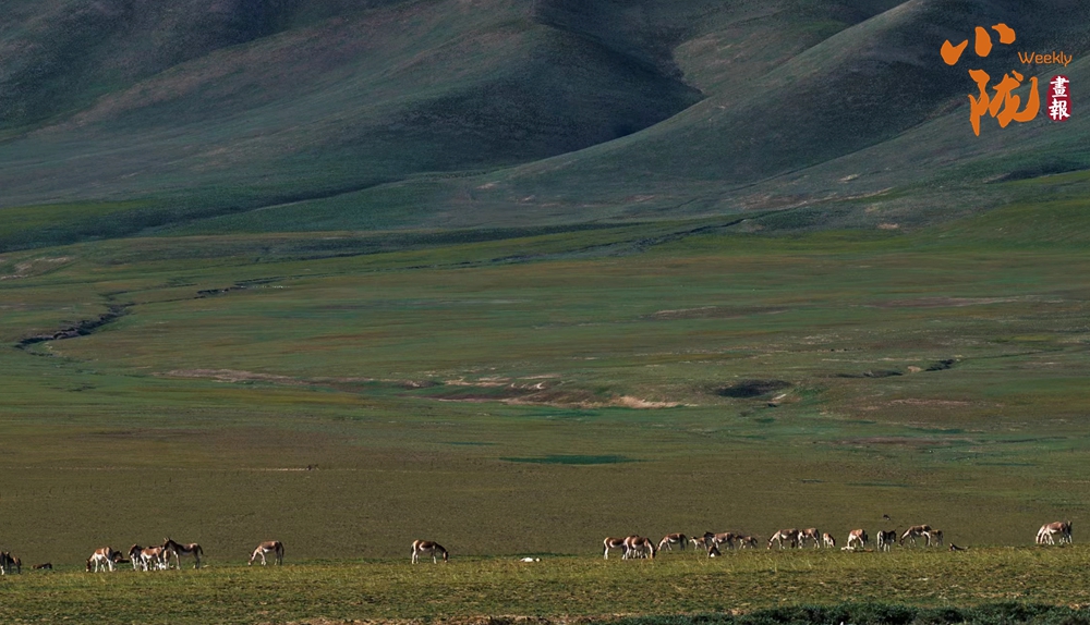 在這片廣袤的草原上,一群群棕色的野驢自由自在地活動著,它們在這片自然的樂園里找尋著食物,享受著陽光的溫暖。