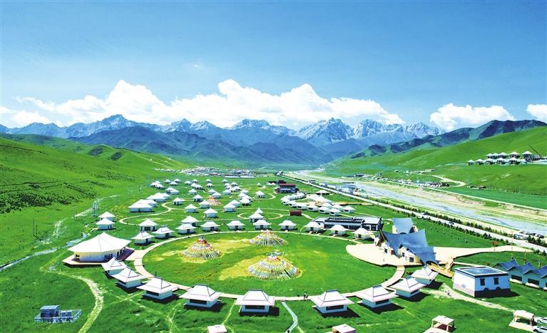 天??h抓喜秀龍鎮(zhèn)的阿尼嘎卓帳篷城美景如畫。 金奉乾