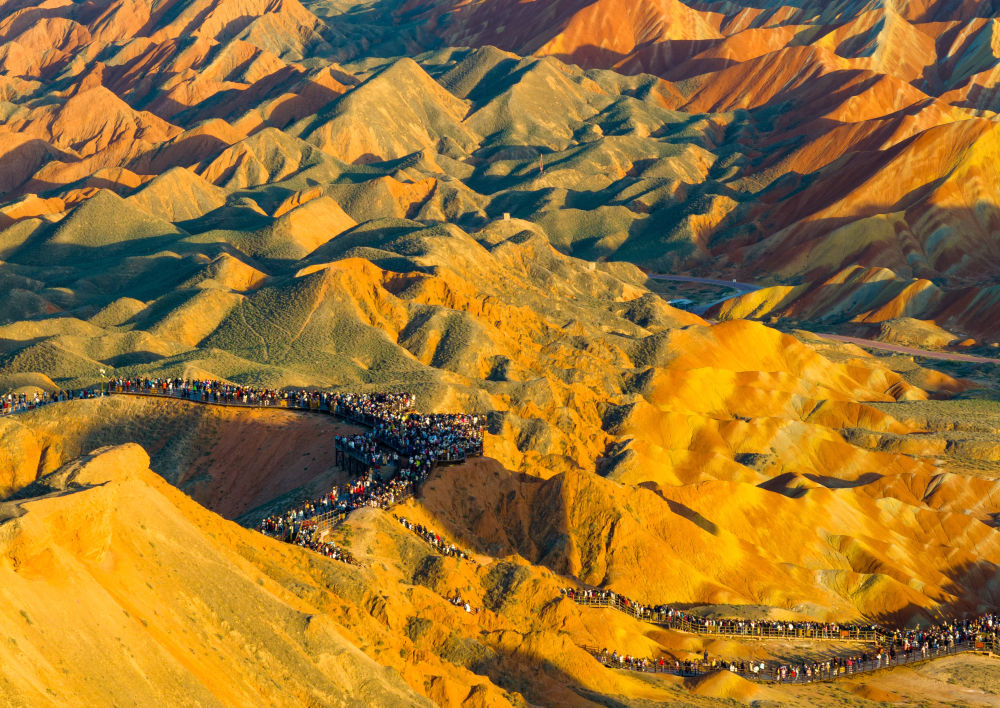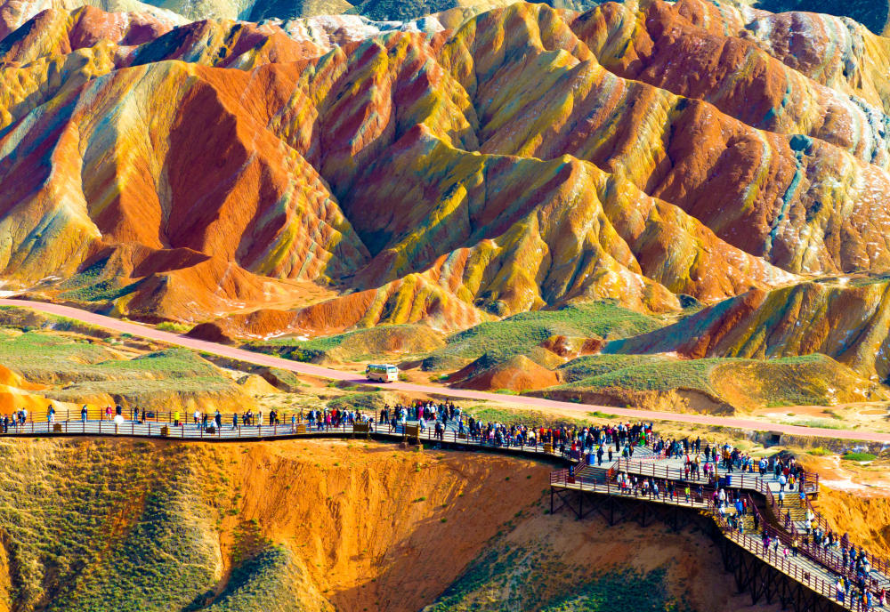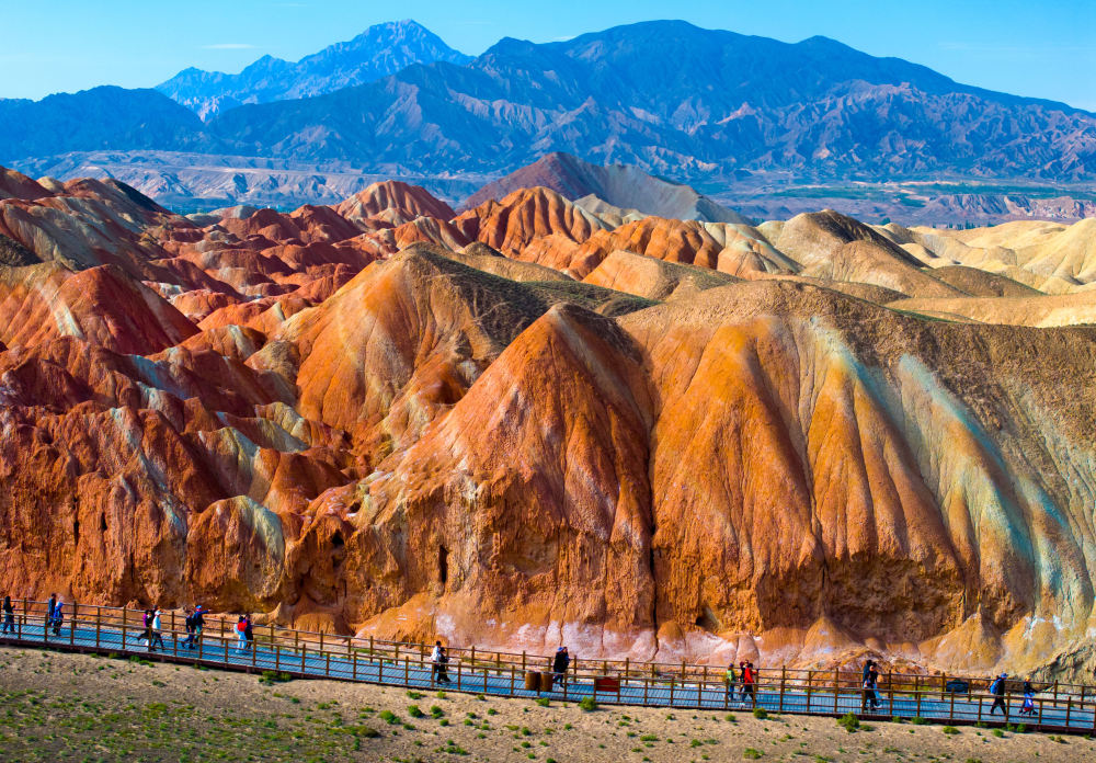 入秋以來(lái),甘肅省張掖市臨澤縣七彩丹霞景區(qū)迎來(lái)游客高峰。丹霞地貌色彩艷麗、造型奇特,使游客仿佛置身畫(huà)境,令人流連忘返。