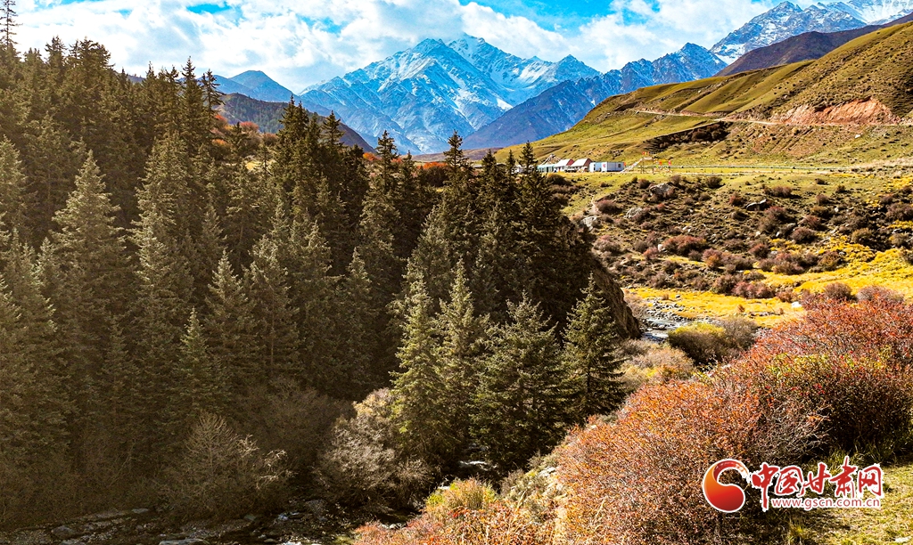 10月9日,在祁連山國家公園甘肅省張掖市肅南裕固族自治縣大河鄉(xiāng)段,一幅秋日畫卷在藍(lán)天白云的映襯下徐徐展開。這里,雪山、森林、草原、濕地、峽谷、河流等多種自然景觀交相輝映,美不勝收。