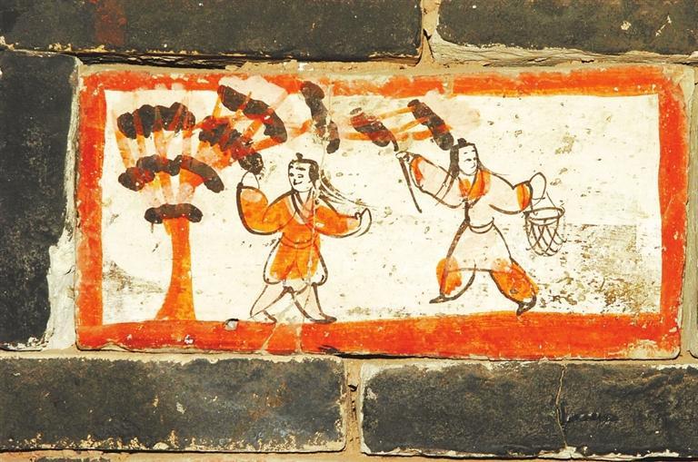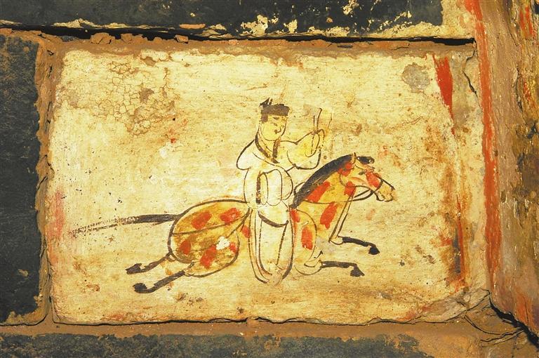 許三灣城魏晉十六國(guó)墓,20世紀(jì)90年代發(fā)掘,出土有彩繪畫(huà)像磚,有前秦建元十四年(公元378年)紀(jì)年磚。