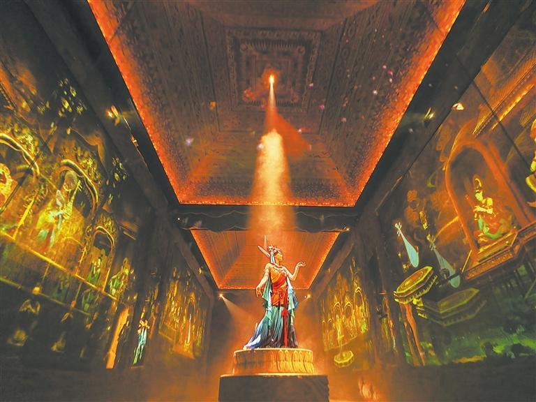 近年來,敦煌借助豐厚的旅游文化資源快速出圈,旅游項(xiàng)目供給不斷豐富,游客多樣化、高品質(zhì)的旅游需求不斷被滿足。其中《樂動(dòng)敦煌》作為全球首部洞窟式沉浸體驗(yàn)劇,自開演以來好評(píng)如潮。該劇在文化書寫、空間營(yíng)造、科技賦能、審美引領(lǐng)、研學(xué)實(shí)訓(xùn)等方面逐步拓展旅游演藝新邊界。