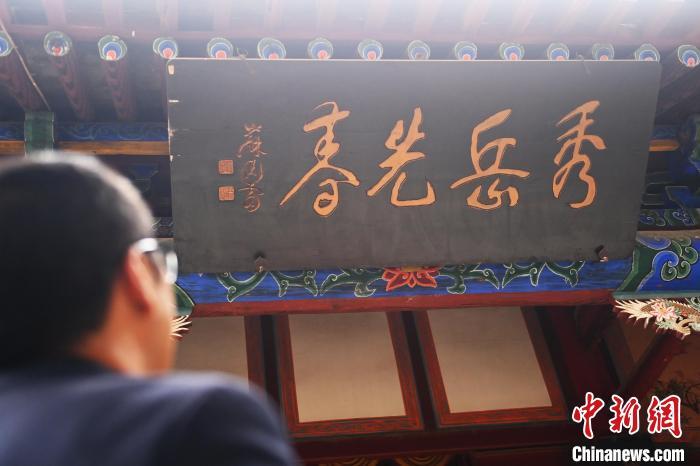 10月23日,甘肅省天水市秦安縣鳳山景區(qū),講解員介紹魯岱下人許行所題隸書“秀岳先春”的匾額。匾額文化是中華民族獨(dú)特的民俗文化,它把辭賦詩文、書法篆刻、建筑藝術(shù)融為一體。秦安作為歷史文化名城,其不少景區(qū)內(nèi)都存在歷史名人所題珍貴匾額,見證了歷史變遷。中新社記者 李亞龍 攝