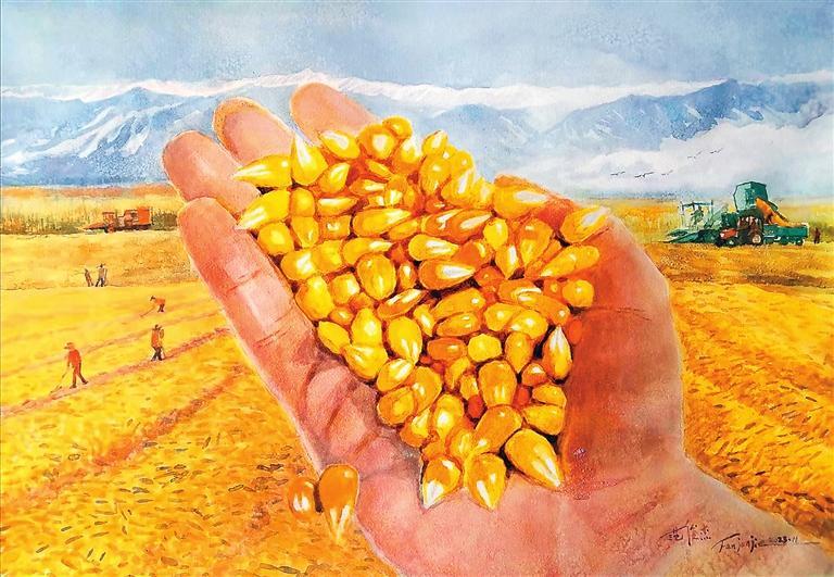 原標題:祁連山下豐收忙〔水彩畫〕