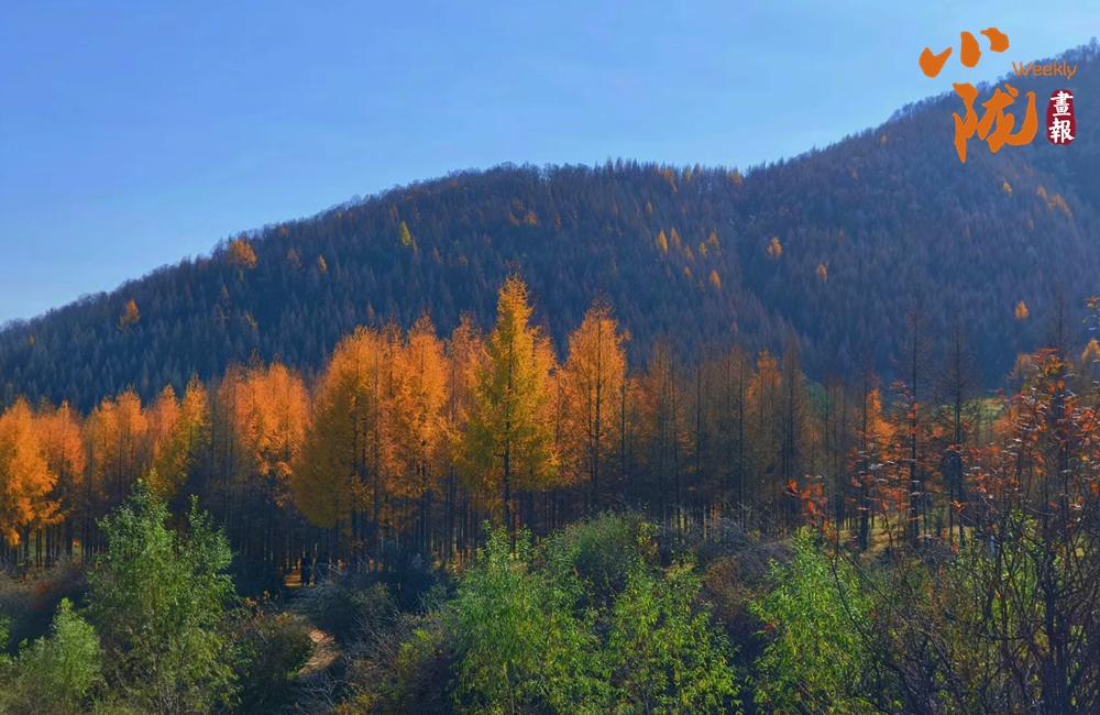 那些曾經(jīng)翠綠的樹木,換上了金黃色的外衣,層層疊疊,綿延至遠方。