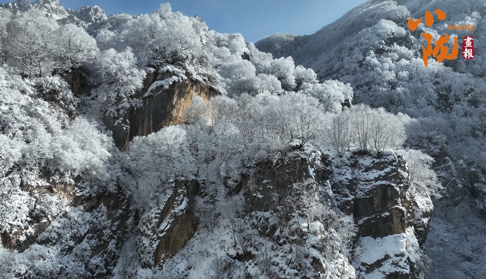 山巒樹木披上“銀裝”,霧凇就像無數(shù)潔白的花朵開在枝頭,玲瓏剔透,仿佛是冬天給予太子山的一份禮物。