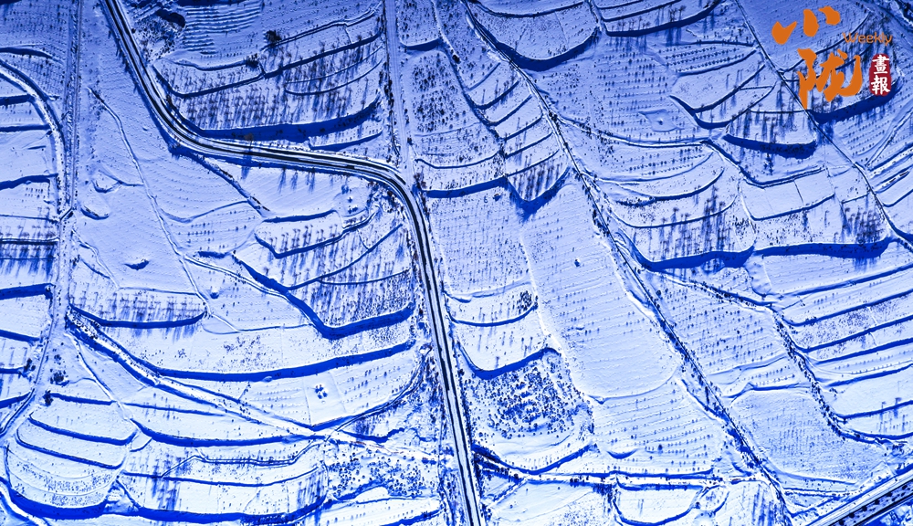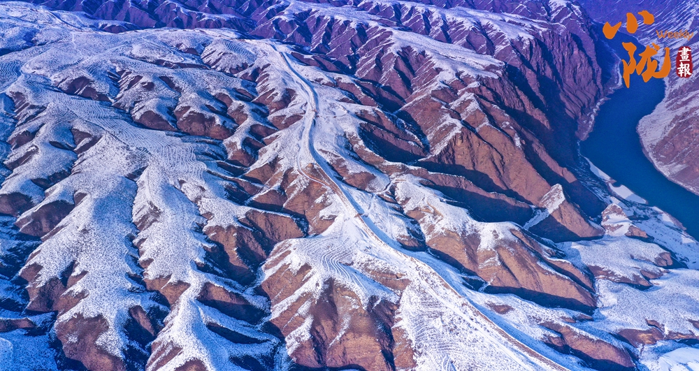 蜿蜒的黃河猶如一條藍(lán)絲帶飄舞在白雪覆蓋的山間、田野,兩岸被雪裝扮得格外壯麗,從空中俯瞰,宛若一幅水墨丹青畫(huà)。