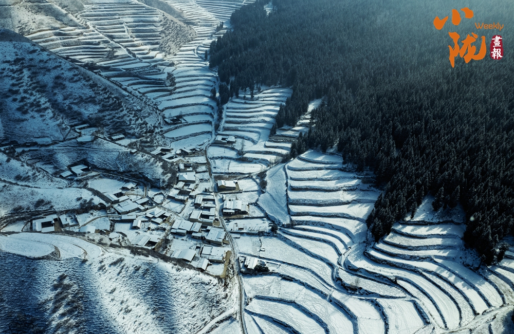 白雪覆蓋,梯田、山林、村落披上銀色華裳,一幅水墨畫般的動(dòng)人景致。