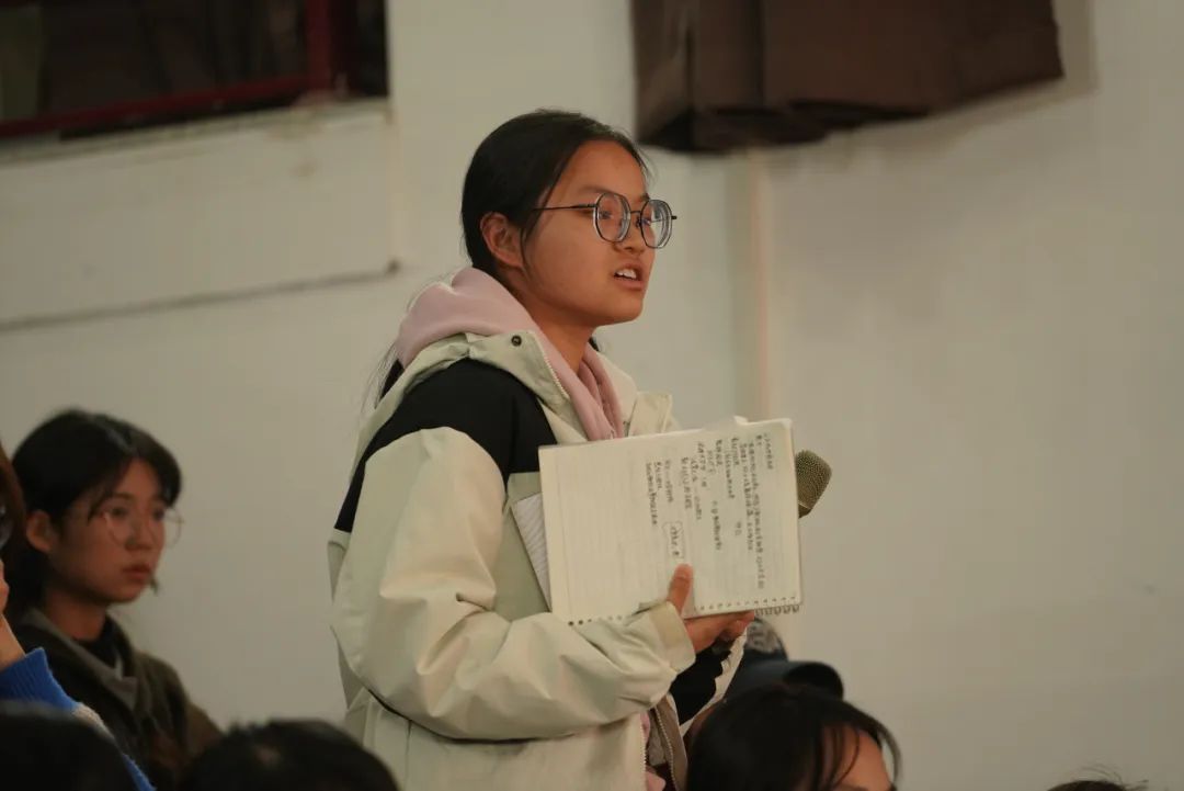 嘉賓發(fā)言環(huán)節(jié)結束后,同學們積極提問,林紅衛(wèi)從多個寫作角度解答了大家的困惑。她強調(diào),寫作需要用心觀察生活,通過反復練習將情感外化為行動,傳遞生活中的真善美。