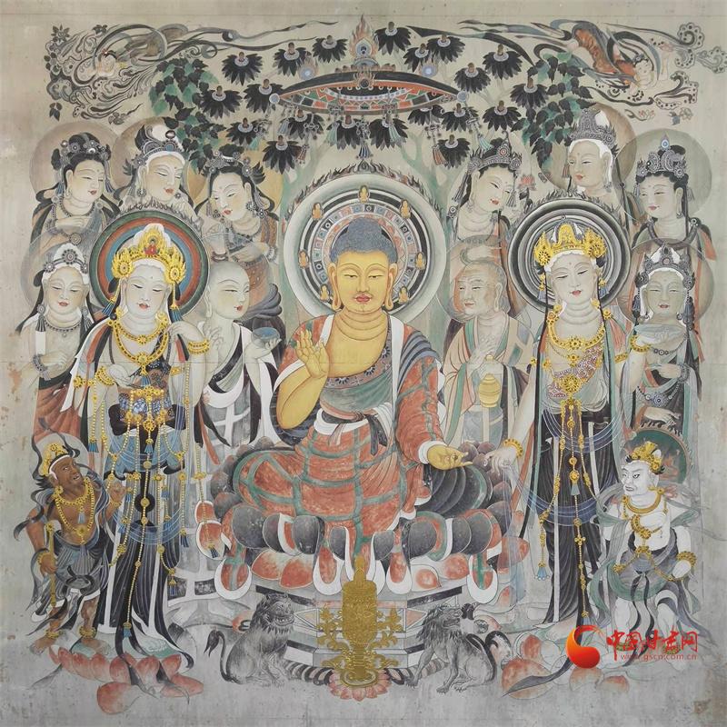 所謂“薄肉雕”就是壁畫與雕塑結(jié)合,在佛像的裝飾部位和衣衫部位都是壁畫描繪,在佛像裸露的身體部位則用雕塑來(lái)塑造立體感。