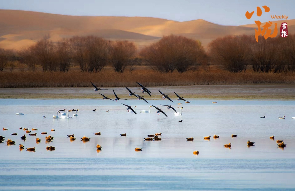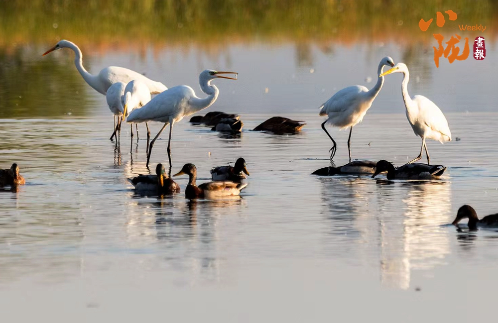 春天,這里萬物復(fù)蘇,蘆葦新綠,候鳥歸來,整個(gè)公園充滿生機(jī)。它們依水而居,或在水中游泳和潛水,或在淺水、灘地與岸邊涉行,或在其上空飛行,引得游人們駐足觀看,構(gòu)成一幅人與自然和諧共生的生態(tài)畫卷。