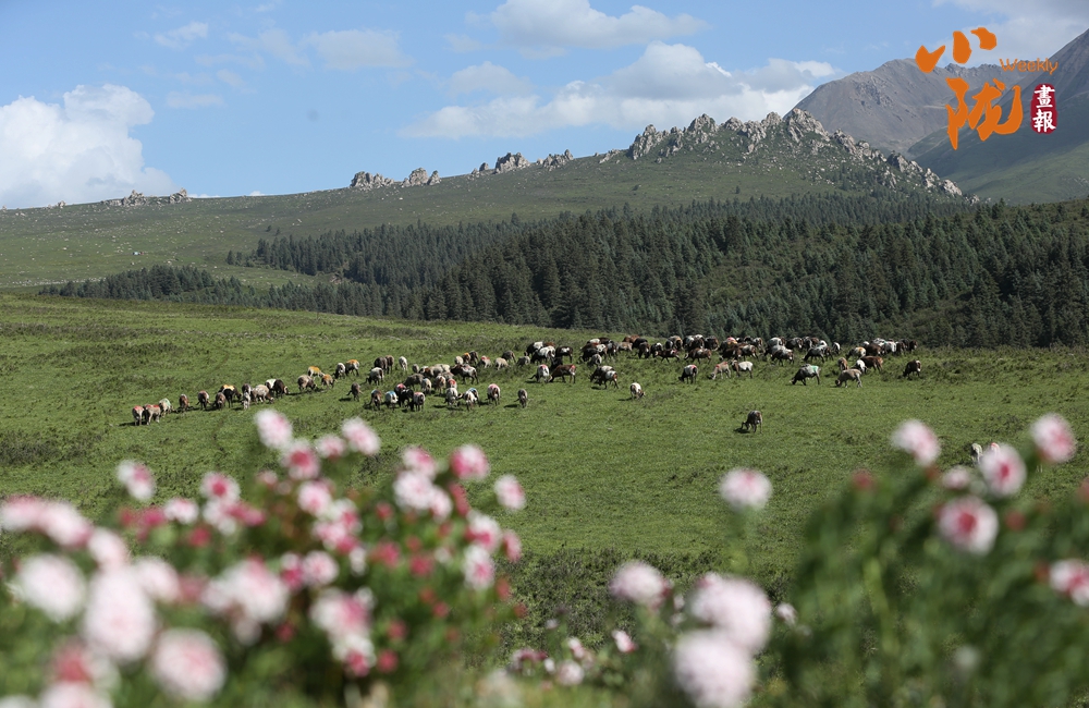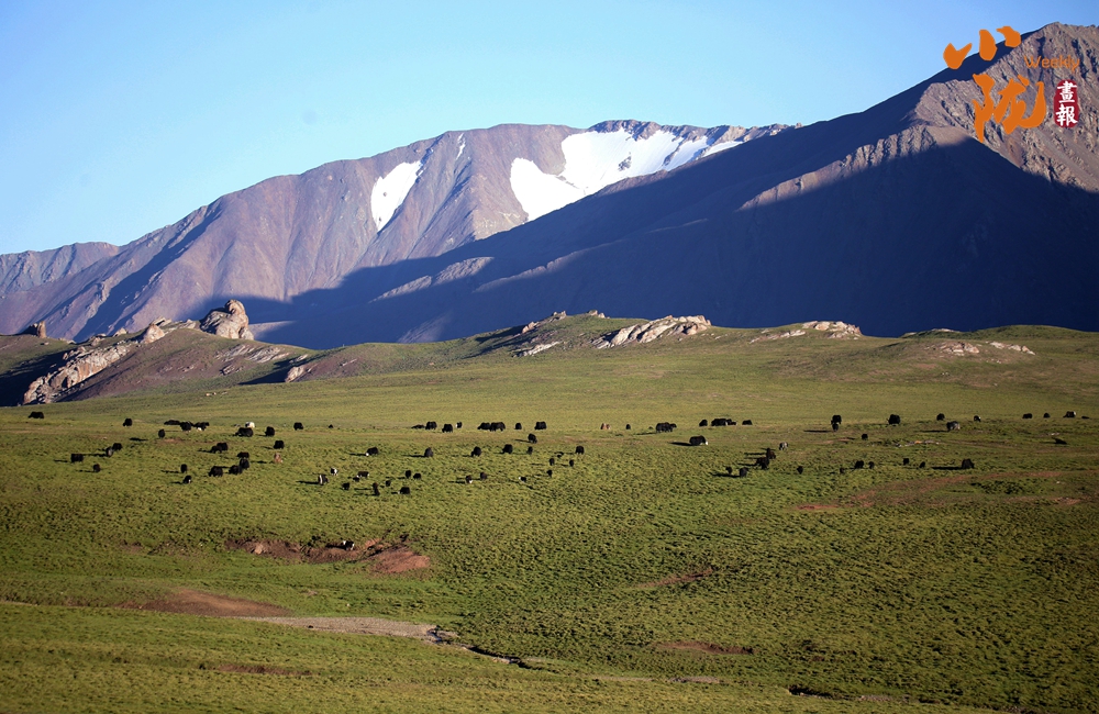 初夏時節(jié),祁連山國家公園張掖肅南縣境內(nèi),天空湛藍(lán)如洗,草原碧綠廣闊,巍峨的雪山仿佛插入云端,牛羊在青草中覓食,勾勒出一幅天然秀麗的生態(tài)畫卷。