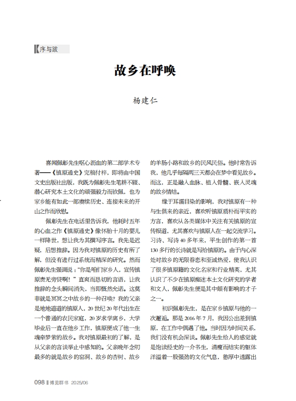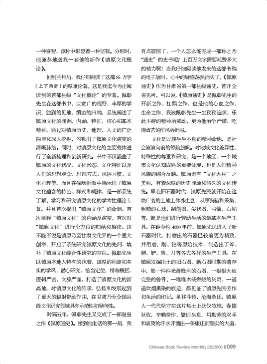 喜聞佩彰先生嘔心瀝血的第二部學術(shù)專著——《鎮(zhèn)原通史》完稿付梓,即將由中國文史出版社出版,我既為佩彰先生筆耕不輟、潛心研究本土文化的頑強毅力而欽佩,也為家鄉(xiāng)能有如此一部賡續(xù)歷史、連接未來的開山之作而欣慰。