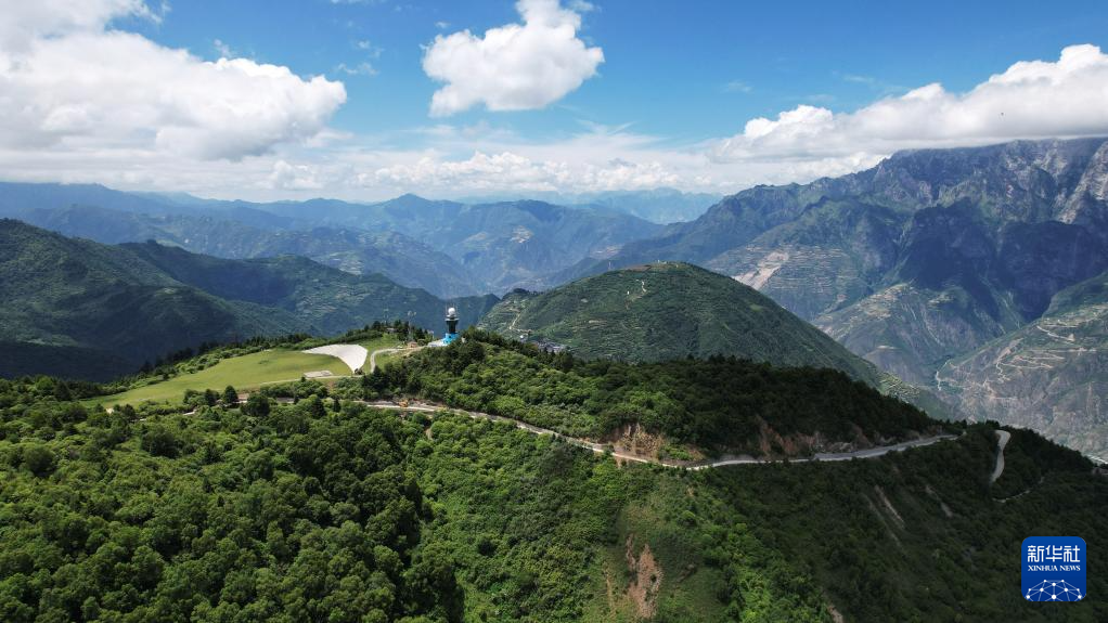 這是7月12日拍攝的舟曲“簪花之路”風(fēng)景廊道沿線風(fēng)光(無人機照片)。新華社記者 陳斌 攝