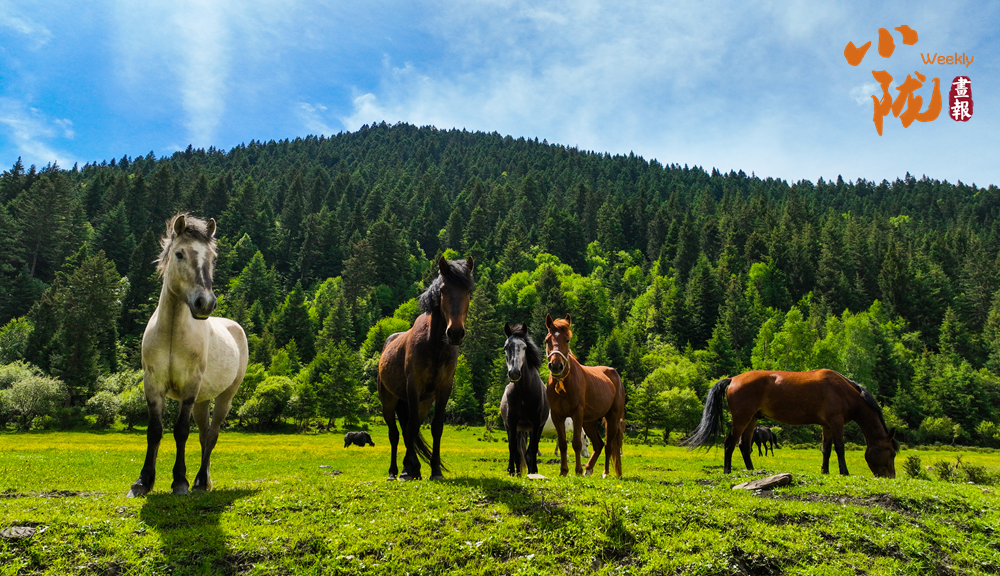 云朵潔白如雪,碧綠的草甸上繁花似錦,散發(fā)著淡淡的清香,引得蜜蜂和蝴蝶翩翩起舞。成群的牦牛與駿馬悠然自得地啃食著青草,牧民的帳篷點綴其間,炊煙裊裊升起,勾勒出一幅寧靜祥和的牧居生活圖景。