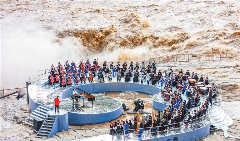 “《黃河回響》——紀(jì)念抗戰(zhàn)勝利暨臺(tái)灣光復(fù)80周年兩岸音樂會(huì)”在山西吉縣黃河壺口瀑布岸畔舉行。閆銳鵬