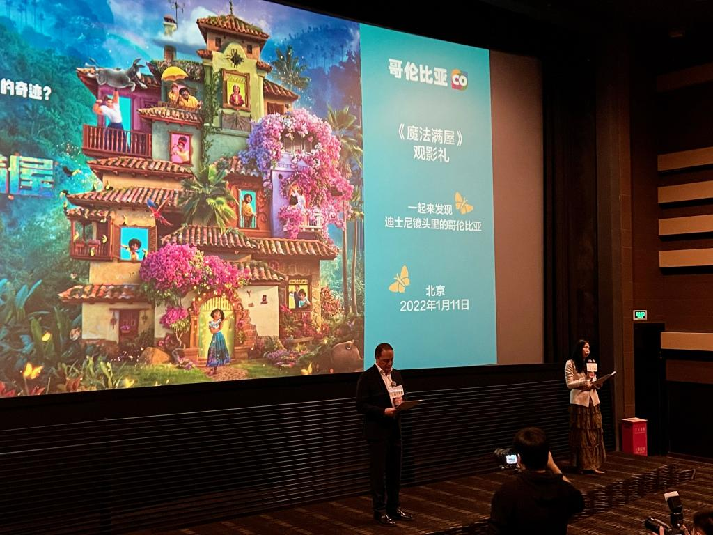 電影《魔法滿屋》自1月7日起在全國上映,哥倫比亞駐華使館1月11日在北京舉行了觀影禮。