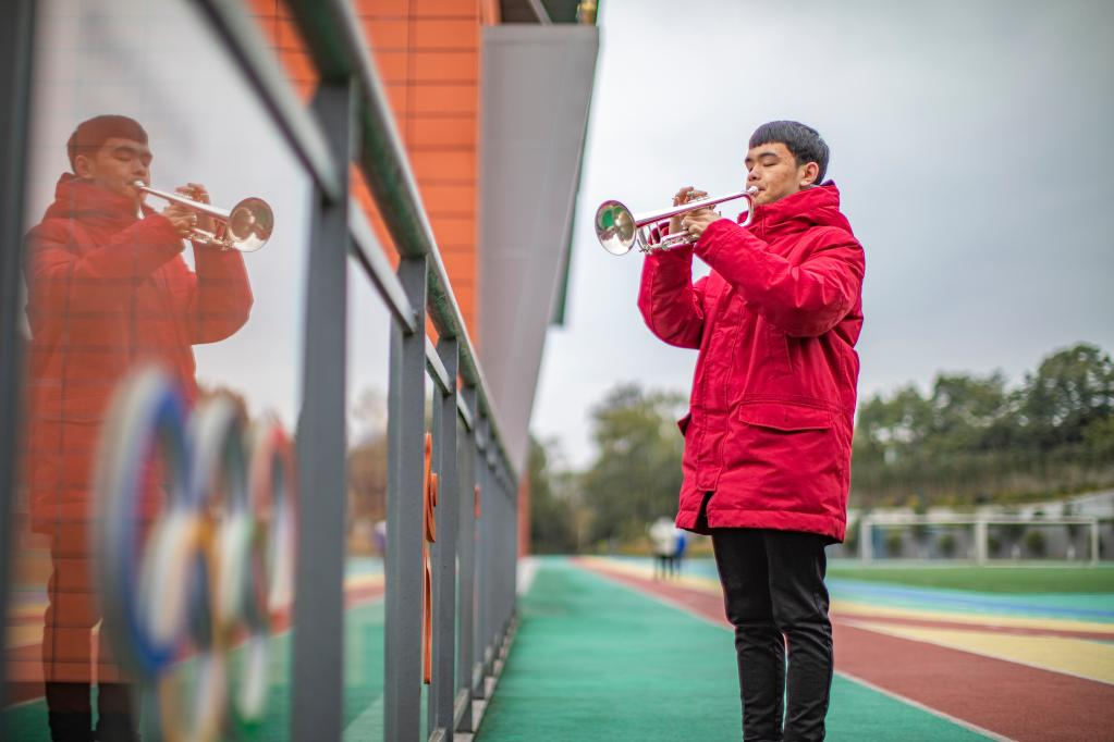 改編后的國(guó)際殘奧委會(huì)會(huì)歌,引子是由小號(hào)奏出高亢嘹亮的號(hào)角。小號(hào)手王太樊,吹響了第一聲旋律。他和盲童小伙伴們,用音樂(lè)“看見”了世界,也讓世界看到他們。