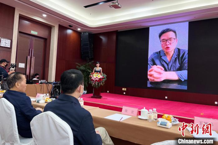 唐帥通過(guò)在線視頻發(fā)言?!∨诵衽R 攝