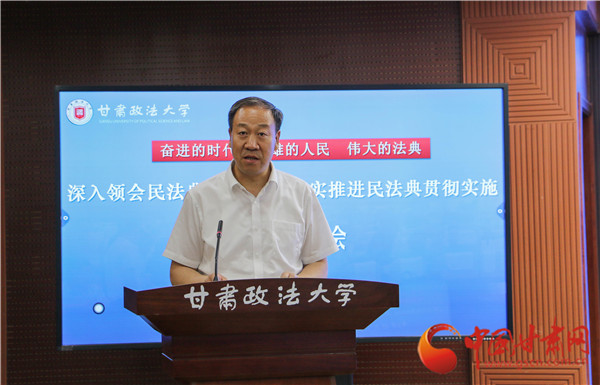 中國(guó)甘肅網(wǎng)7月9日訊 (本網(wǎng)記者 彭曉姣)7月8日,甘肅政法大學(xué)召開(kāi)“深入領(lǐng)會(huì)民法典核心要義,切實(shí)推進(jìn)民法典貫徹實(shí)施”理論研討會(huì)。研討會(huì)的主旨是深入貫徹落實(shí)習(xí)近平總書記關(guān)于“切實(shí)實(shí)施民法典”的重要講話精神,為甘肅省有效實(shí)施民法典、不斷完善民商事法律制度提供理論支撐。