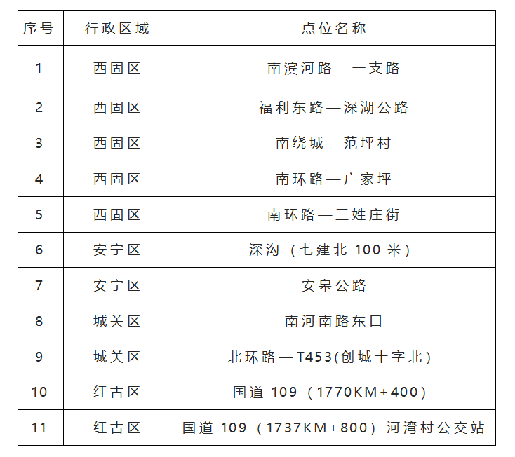 以下為11處非現(xiàn)場執(zhí)法系統(tǒng)抓拍點(diǎn)位: