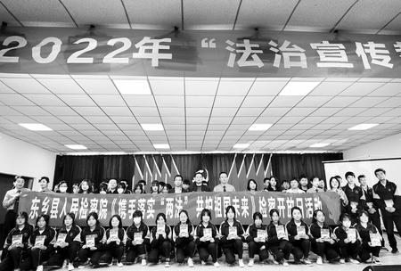 東鄉(xiāng)縣檢察院和民族中學(xué)共同舉辦“攜手落實(shí)‘兩法’共護(hù)祖國未來”檢察開放日宣講活動(2022年5月31日拍攝)?!      |鄉(xiāng)縣檢察院供圖