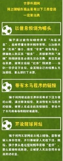 記者了解到,世界杯期間往往是賭球詐騙的高發(fā)期。多地公安機關(guān)也發(fā)布提示信息,呼吁網(wǎng)友遠離網(wǎng)絡賭球。