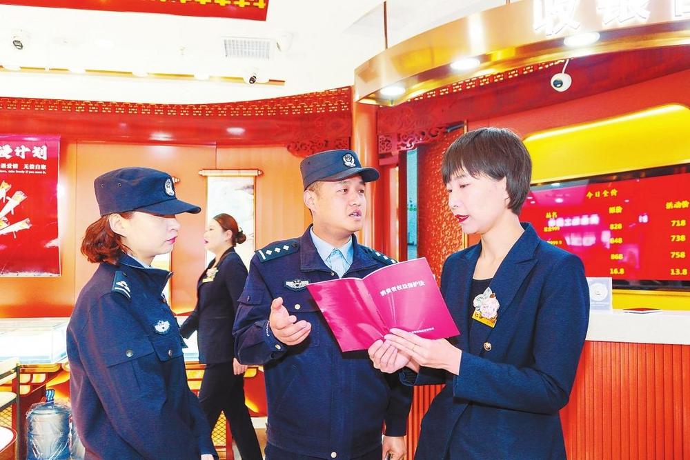 3月14日,蘭州市公安局七里河分局組織多個派出所民輔警走進商超、餐飲、副食品店等營業(yè)場所,開展“3·15”消費者權(quán)益日普法宣傳和專項檢查,倡導商家誠實守信合法經(jīng)營,為消費者營造安全、放心的消費環(huán)境。 新甘肅·甘肅法治報記者張瑞軍攝