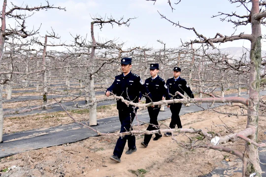 當(dāng)夕陽給蘋果樹鍍上金邊,結(jié)束巡邏的民警們又聚在派出所研判當(dāng)天收集的農(nóng)情。在這片被精心呵護(hù)的土地上,青綠色的嫩芽正醞釀著金秋的甜蜜,花牛派出所民輔警用腳步丈量果園,用責(zé)任護(hù)航平安。他們的身影與果農(nóng)們的笑臉交織在一起,構(gòu)成了一幅和諧美好的春耕畫卷。“一年之計在于春,春耕是農(nóng)民一年中最重要的時候,我們多跑跑腿、多操操心,果農(nóng)們就能安心種地、放心收成。”張?zhí)锝苄χf道。陽光下,他們的警徽熠熠生輝,映照出人民警察為人民的初心與擔(dān)當(dāng),而警民共繪的平安畫卷,早已融入隴原春深處的每一寸生機。
