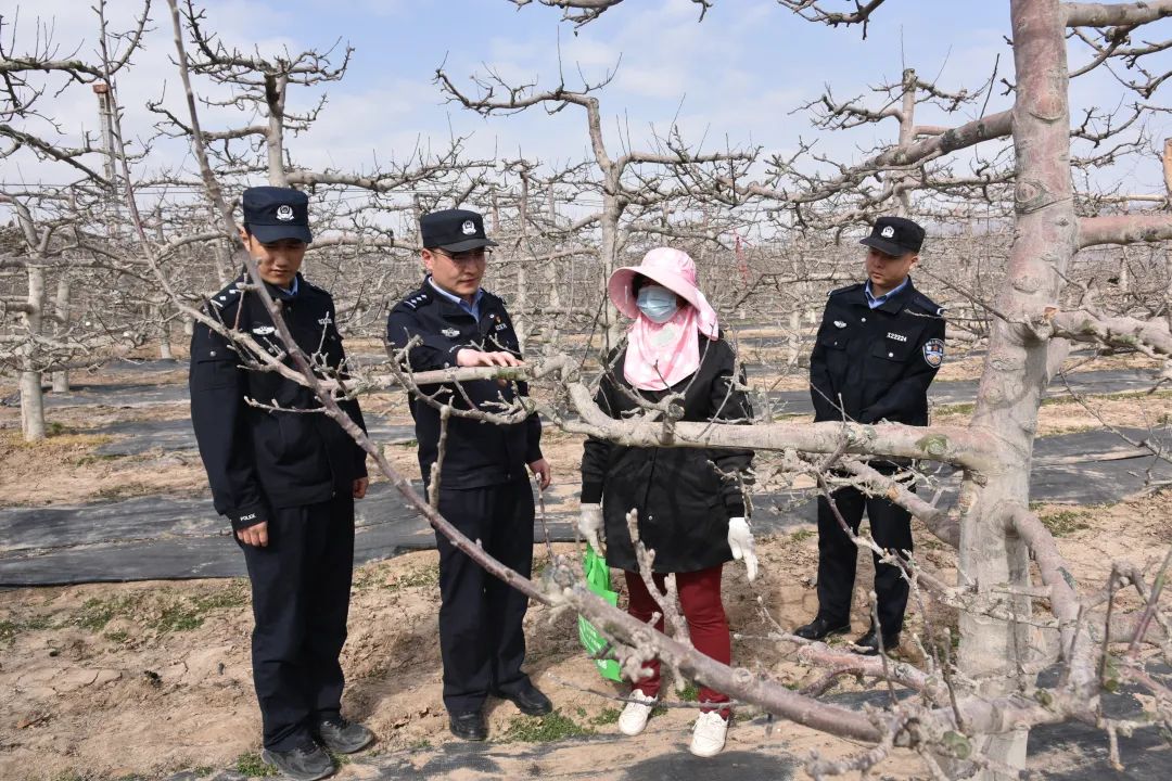 在這片希望的田野上,一抹抹藏藍(lán)色的身影穿梭于果園中,格外引人注目。“老武,今年果樹長勢不錯??!不過最近天氣干燥,可得注意防火,別在地頭抽煙了!”民警張?zhí)锝芤贿呇策?,一邊笑著提醒正在修剪果樹的果農(nóng)武大叔。“放心吧,張警官,你們天天來巡邏,我們心里踏實多了!”武大叔擦了擦額頭的汗,連連點頭道。