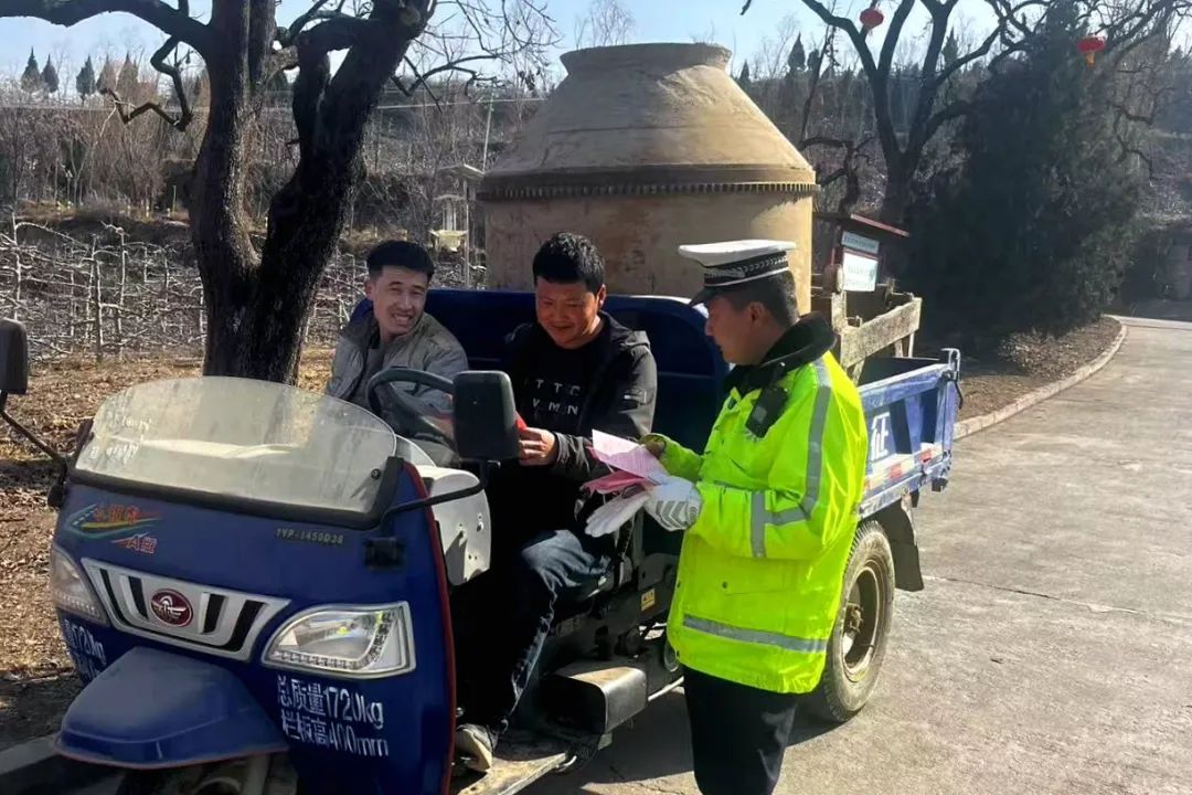 針對春耕期間農(nóng)用車違法載人、超載運輸、人貨混裝等安全隱患,花牛派出所聯(lián)合交警中隊組建“春耕宣傳小分隊”,深入春耕生產(chǎn)一線,通過發(fā)放交通安全宣傳單等方式,結(jié)合典型案例,用“拉家常”的語言向群眾送去“交通安全”的種子,全力守護(hù)果農(nóng)們的春耕生產(chǎn)路。