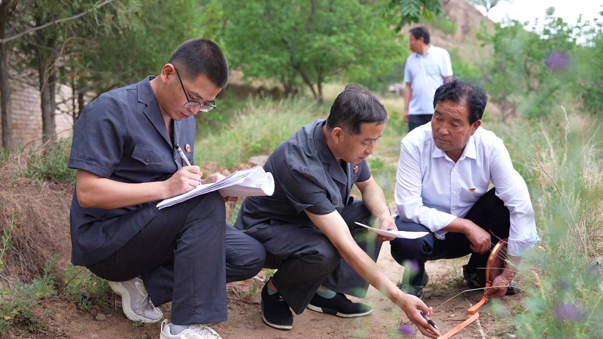 鎮(zhèn)原縣法院開(kāi)邊法庭現(xiàn)場(chǎng)調(diào)處一起相鄰權(quán)糾紛(慶陽(yáng)市中級(jí)人民法院供圖)