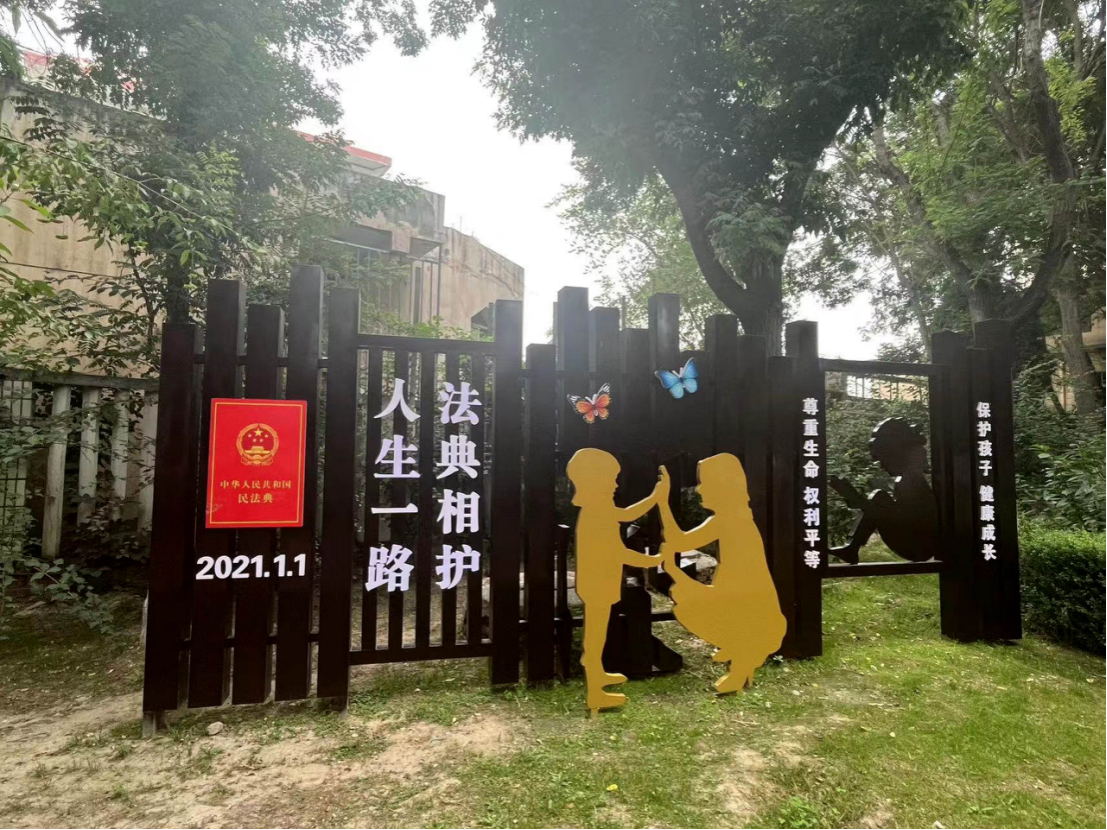 除了線上“第一課”,記者看到,金城公園設(shè)置憲心園、典護(hù)園、網(wǎng)絡(luò)安全主題區(qū)、法治文化廣場四大主題普法區(qū):憲心園設(shè)巨型《憲法》刻書;典護(hù)園設(shè)立了《民法典》宣傳建筑與母子雕塑;網(wǎng)絡(luò)安全主題區(qū)則以圓形建筑為“防護(hù)墻”,聚焦網(wǎng)絡(luò)詐騙、個(gè)人信息保護(hù)等,提升網(wǎng)絡(luò)安全意識;法治文化廣場融合明清仿古建筑與現(xiàn)代法律元素,設(shè)置《民法典》生活展牌、網(wǎng)絡(luò)普法園等。