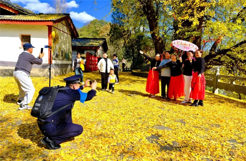 被秋色渲染的詩和遠方背后,“警察藍”早已與山水和諧同框。晨霧中,成縣公安的無人機如雄鷹掠過雞峰云海;金黃的稻田里,“駐村輔警”用鄉(xiāng)音化解著鄰里糾紛;徽縣嘉陵江畔,特警的身影在江風(fēng)中堅定挺立。這些畫面共同繪就了一幅新時代的“警旅融合圖”。