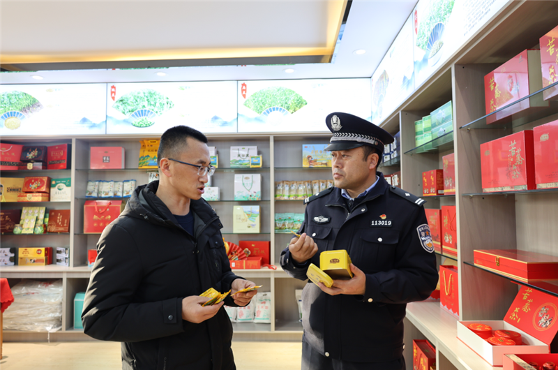 ▲通渭縣公安局經(jīng)偵大隊民警深入轄區(qū)食品公司,開展普法宣傳和風(fēng)險隱患排查活動。(孛金鵬 攝)