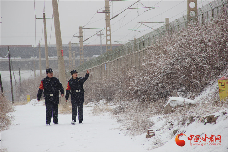 天祝西站派出所民警在護(hù)網(wǎng)旁前行,在人跡罕至的高原,他們用日復(fù)一日的堅(jiān)守,守護(hù)著列車的飛馳與旅客的歸途