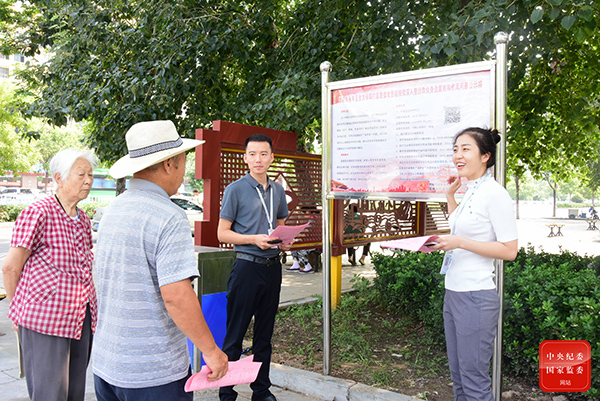 河北省邯鄲市永年區(qū)紀(jì)委監(jiān)委在村委會(huì)、醫(yī)院、公園等公眾場(chǎng)所懸掛公示牌,向群眾發(fā)放告知書,對(duì)群眾身邊腐敗和作風(fēng)問題整治內(nèi)容進(jìn)行現(xiàn)場(chǎng)講解,提高群眾知曉率。(河北省邯鄲市永年區(qū)紀(jì)委監(jiān)委 朱照坤 攝)