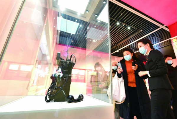 日前,“紅色電波中的領(lǐng)袖風(fēng)范——毛澤東同志香山時(shí)期發(fā)布電報(bào)手稿”專題展覽在北京香山革命紀(jì)念館舉行。圖為觀眾在觀看拍攝展出的電臺(tái)。(圖片來(lái)源:人民視覺(jué))