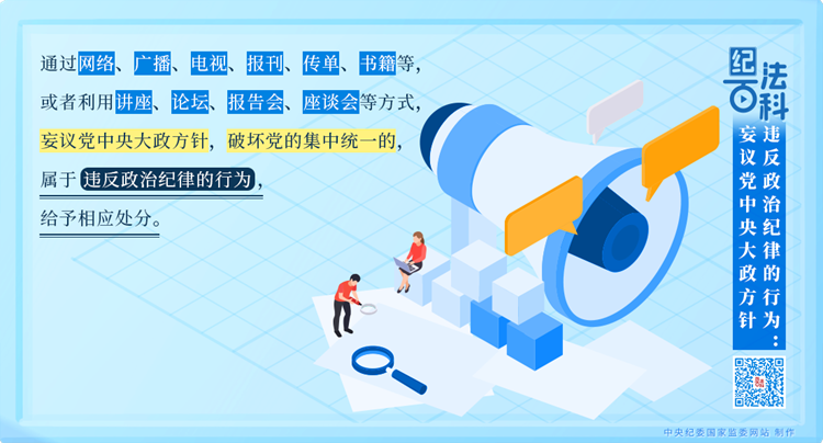 執(zhí)紀(jì)監(jiān)督中發(fā)現(xiàn),有的黨員、干部“當(dāng)面不說、背后亂說”“會上不說、會后亂說”“臺上不說、臺下亂說”,對黨中央大政方針說三道四。這些言論擾亂黨員、干部思想,破壞黨的團(tuán)結(jié)統(tǒng)一,妨礙黨中央大政方針的貫徹落實,必須依規(guī)依紀(jì)嚴(yán)肅處理。