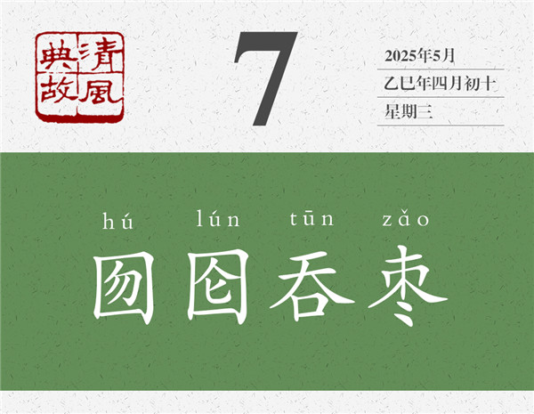 囫圇,就是完完整整的意思;把棗子完完整整地吞咽下去,就叫“囫圇吞棗”。我們常說(shuō)的“囫圇吞棗”,原來(lái)是一個(gè)傻子自作聰明的“發(fā)明”。雖然完完整整地吞下了一個(gè)棗子,但嚼也不嚼,連棗核也不用吐,連棗子什么味道也不用嘗,直接就咽下去了,這是聰明之舉嗎?吃東西為什么要咀嚼,既是為了品嘗滋味、享受過(guò)程,也是為了更好地消化吸收、獲取營(yíng)養(yǎng)。后世即以“囫圇吞棗”為典,比喻學(xué)習(xí)或借鑒過(guò)程中的死記硬背、照本宣科現(xiàn)象。看似據(jù)為己有了,實(shí)則只是走了個(gè)過(guò)場(chǎng)而已。朱自清《論詩(shī)學(xué)門(mén)徑》:“一個(gè)高中文科的學(xué)生,與其囫圇吞棗或走馬看花地讀十部詩(shī)集,不如仔仔細(xì)細(xì)地背誦三百首詩(shī)。”