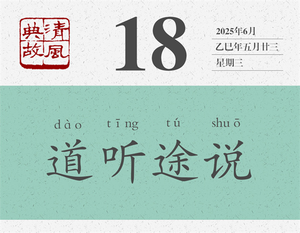《論語(yǔ)·陽(yáng)貨》:“子曰:‘道聽而涂說(shuō),德之棄也。’”孔子說(shuō):“在路上聽到傳言就到處去傳播,這是道德所唾棄的。”