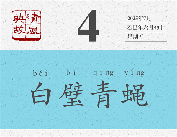 一顆老鼠屎,壞了一鍋湯。同樣,一點蒼蠅屎,也能使素練、白璧受到不可挽回的玷污。任何時候,都有好進(jìn)讒言的人,今天說這個人的壞話,明天說那個人的壞話,忙得不亦樂乎,其蠅營狗茍、猥猥瑣瑣之行徑,讓人生厭,也讓人切齒。李白曾在《雪讒詩贈友人》詩中質(zhì)問:“白璧何辜,青蠅屢前?”質(zhì)問不是終點,更應(yīng)當(dāng)讓他們茍且行為大白于世,讓損害別人名聲、敗壞社會風(fēng)氣者,無地自容,無所遁形。