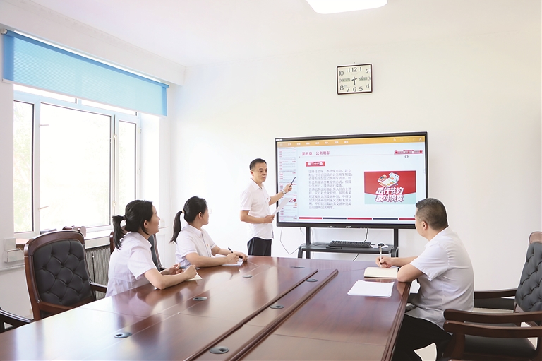 黑龍江省大興安嶺地區(qū)紀(jì)委監(jiān)委貫徹帶頭過緊日子要求,通過常態(tài)化教育機制推動紀(jì)檢監(jiān)察干部將勤儉理念融入日常工作和生活。圖為大興安嶺地區(qū)新林區(qū)紀(jì)檢監(jiān)察干部圍繞厲行節(jié)約、反對浪費開展學(xué)習(xí)。王麗 攝