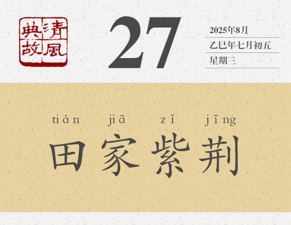 后人即以“田家紫荊”為典,形容兄弟之間同根而生,和睦相處。楊萬里詩《題蕭端虛和樂堂》有這樣的句子:“白頭兄弟不多有,面如橘紅不關酒。紫荊花開連理枝,孝友未要時人知。”其中“紫荊花開”即化用此典。兄弟同根同源,沒有理由四分五裂,沒有理由互相爭斗。正如曹植《七步詩》所云:“煮豆燃豆萁,豆在釜中泣。本是同根生,相煎何太急?”常言道:“兄弟齊心,其利斷金。”兄弟之間只要心往一處想,勁往一處使,家庭就能欣欣向榮,興旺發(fā)達。
