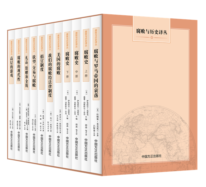 《腐敗與歷史譯叢》是一套專門研究世界各國歷史上的腐敗與反腐敗的大型學術譯叢。現(xiàn)已出版《腐敗與羅馬帝國的衰落》《腐敗史》《美國的腐?。簭母惶m克林的鼻煙盒到聯(lián)合公民勝訴案》《我們的腐朽法律制度:為何人人都是受害者(富有的罪犯除外)》《捐官制度:十八世紀法國的賣官鬻爵》《欲望、交易與腐?。喝毡窘瓚魰r代見聞錄》《禮品、饋贈和金錢:從西班牙殖民統(tǒng)治時期到現(xiàn)代的新拉丁美洲腐敗史》《腐敗的現(xiàn)代性:英屬印度帝國締造進程中的腐敗與道德》《高層的游戲:英國軍火貿易賄賂史》等九冊。