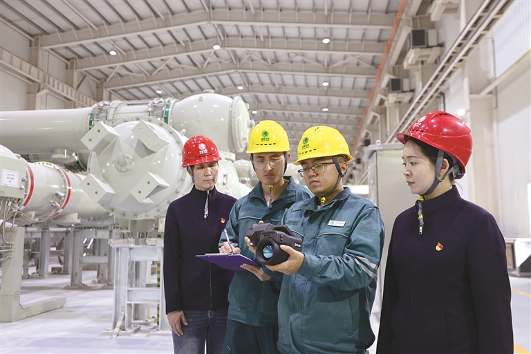 國(guó)網(wǎng)寧夏電力有限公司紀(jì)委以有力監(jiān)督推動(dòng)“寧電入湘”特高壓線路工程投運(yùn)后各項(xiàng)工作平穩(wěn)有序推進(jìn)。圖為近日,該公司紀(jì)委工作人員在國(guó)網(wǎng)寧夏超高壓公司中寧換流站開(kāi)展現(xiàn)場(chǎng)監(jiān)督檢查。王天鵬 攝